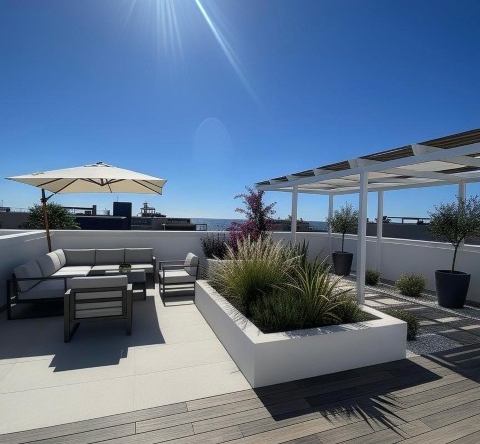 •Terraza privada en la azotea del edificio de 32m2 perfecta como solárium, zona chill-out o para reuniones al aire libre.