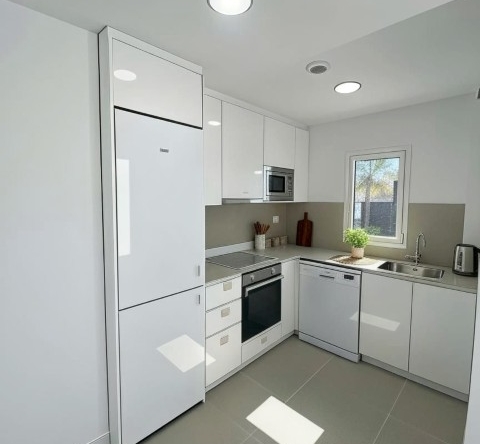 •Salón-comedor y cocina con electrodomésticos integrados (horno, microondas, vitrocerámica de inducción, campana extractora y lavavajillas todo de marca Bosch) salida directa a terraza de 10 m² con toldo automático, ideal para disfrutar del aire libre.